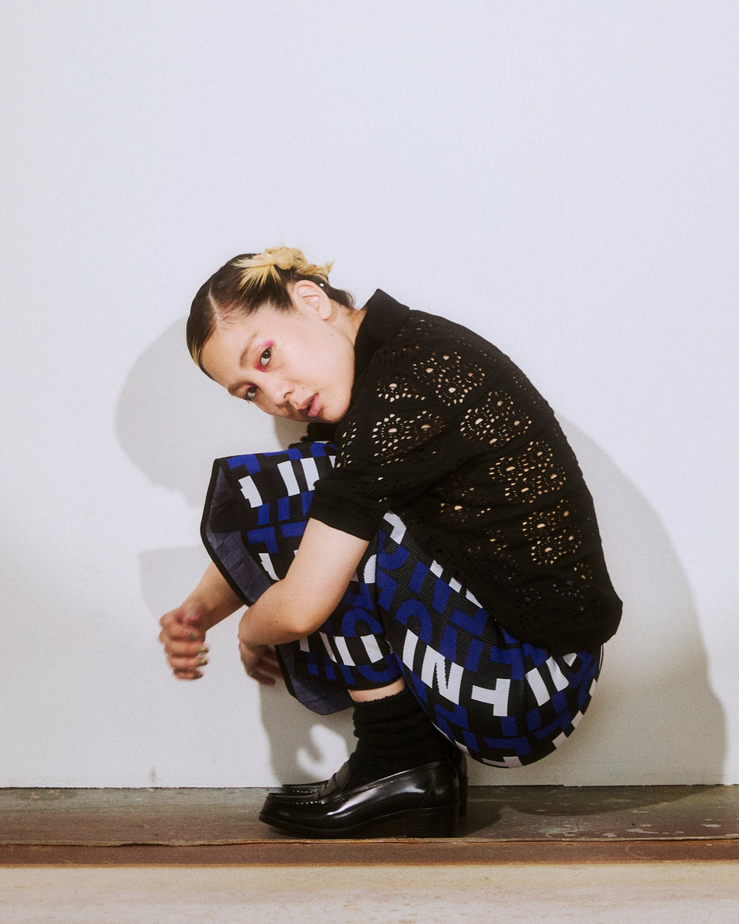 ・OPULENCEのロゴを大胆に再構築し、幾何学模様として落とし込んだアート感あふれるジャガード柄が印象的。