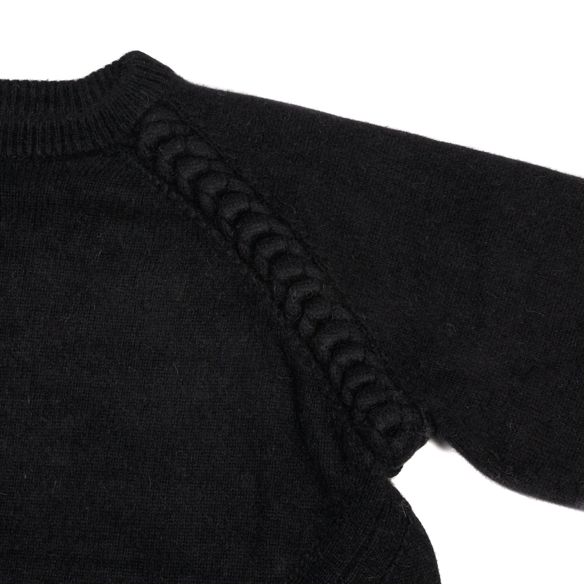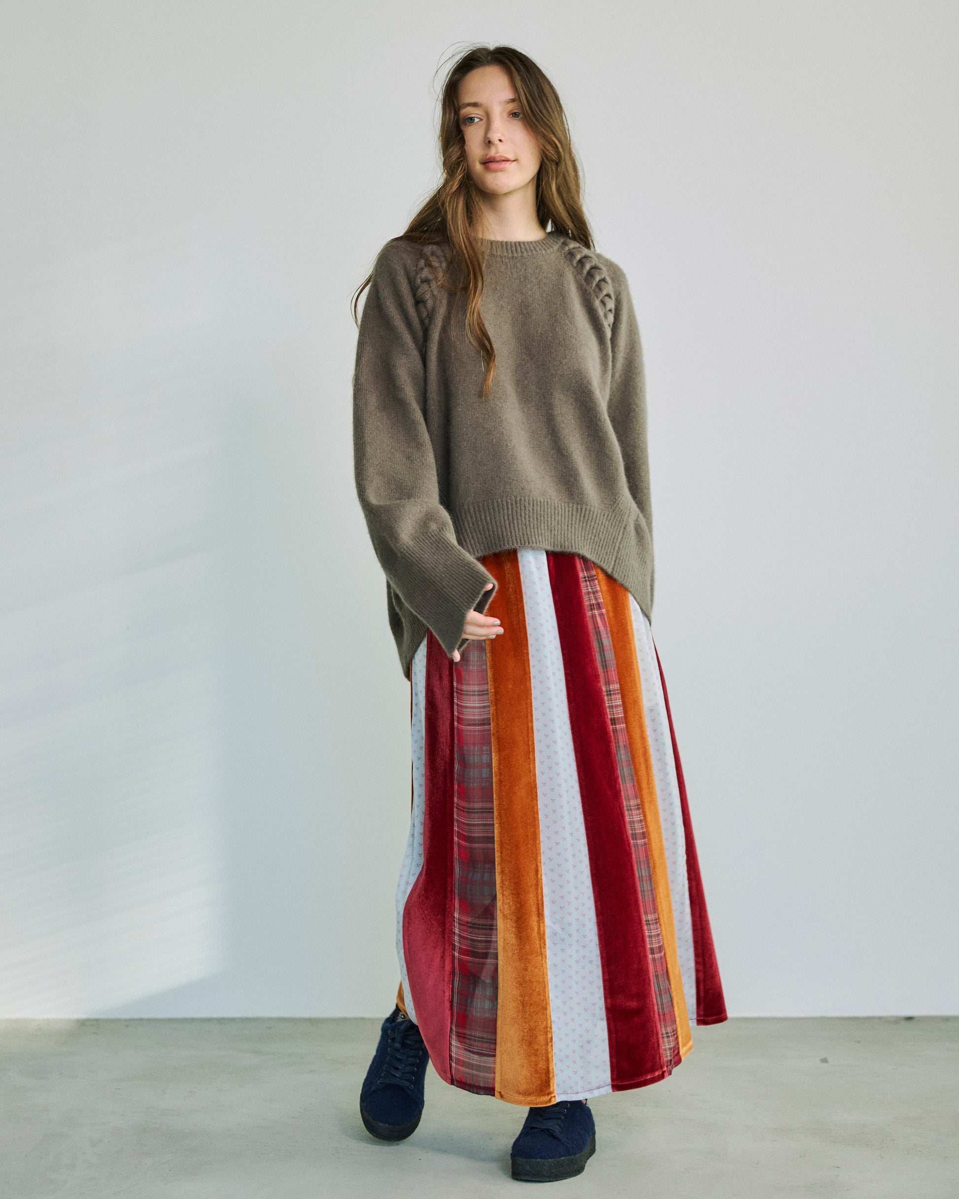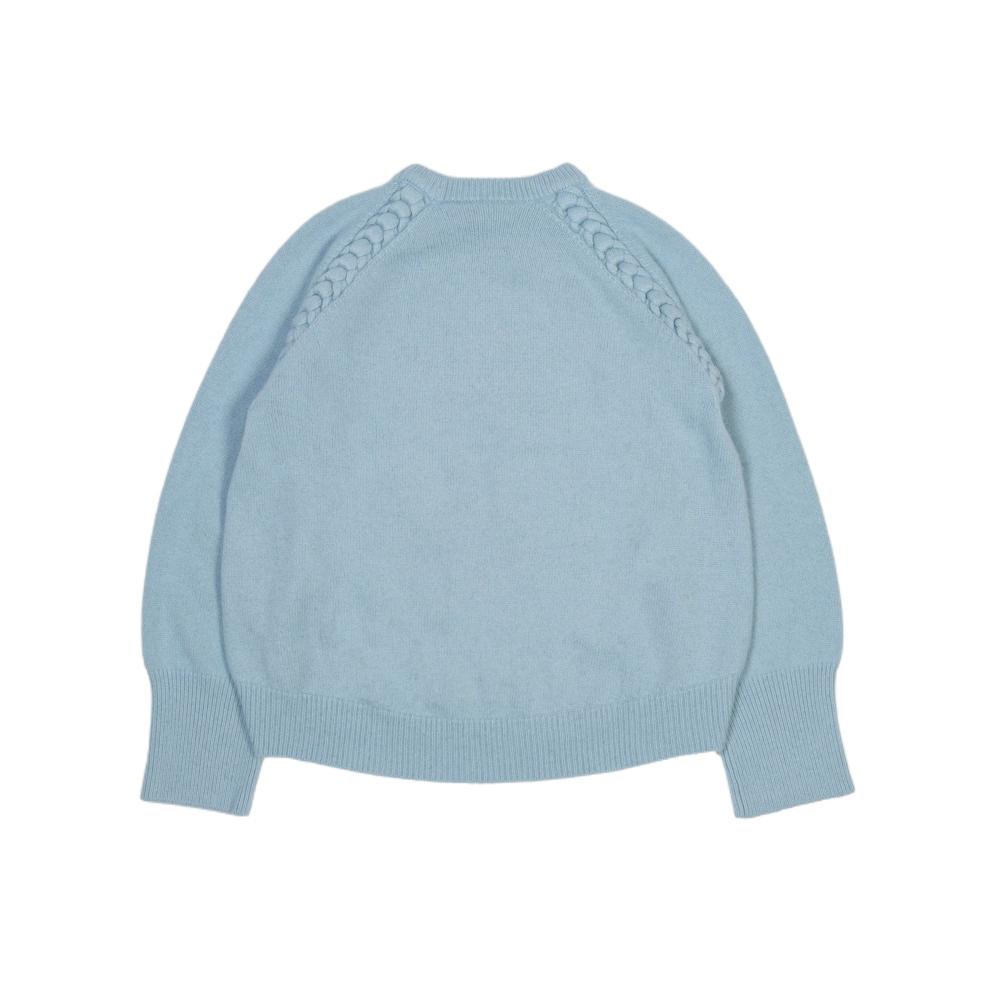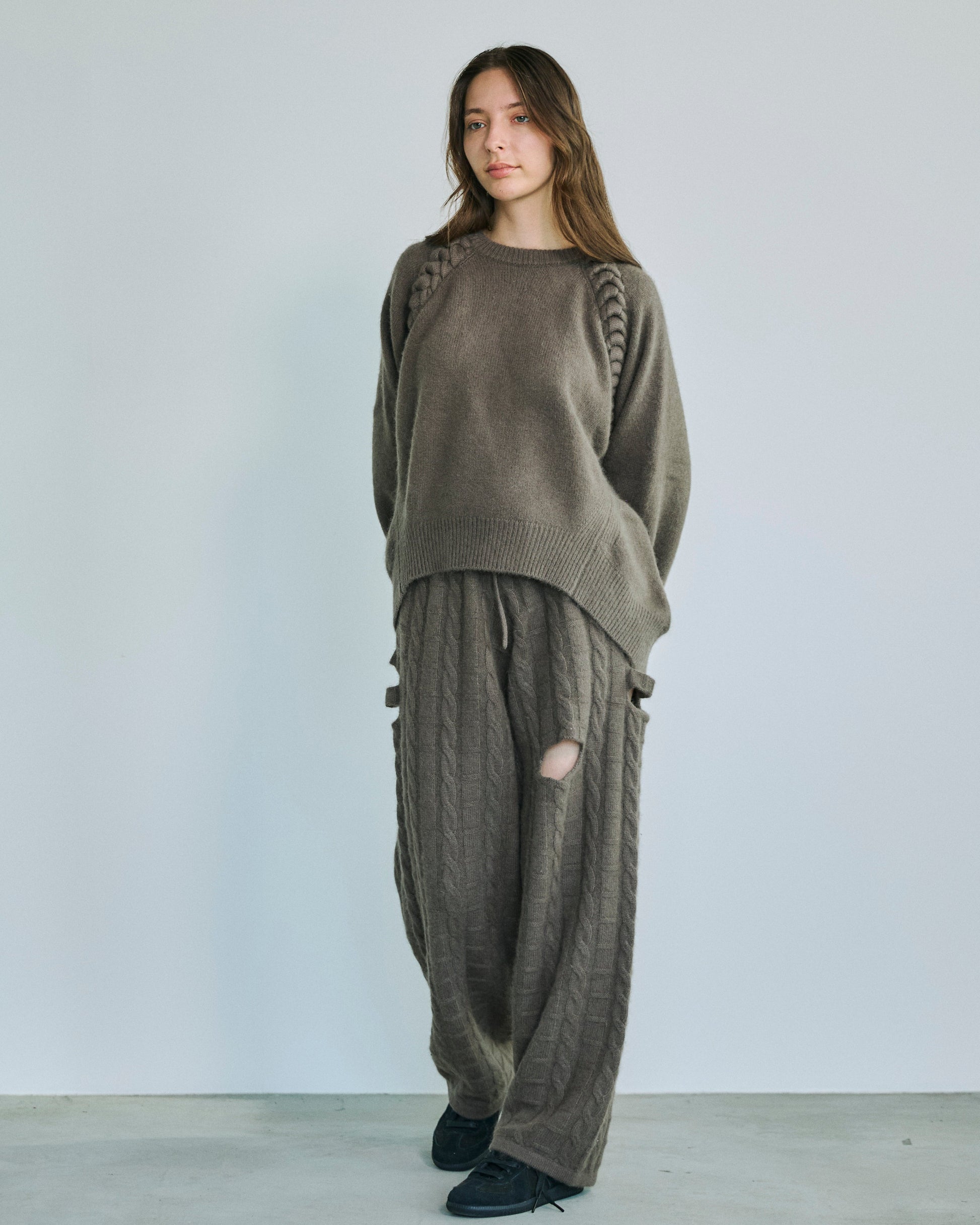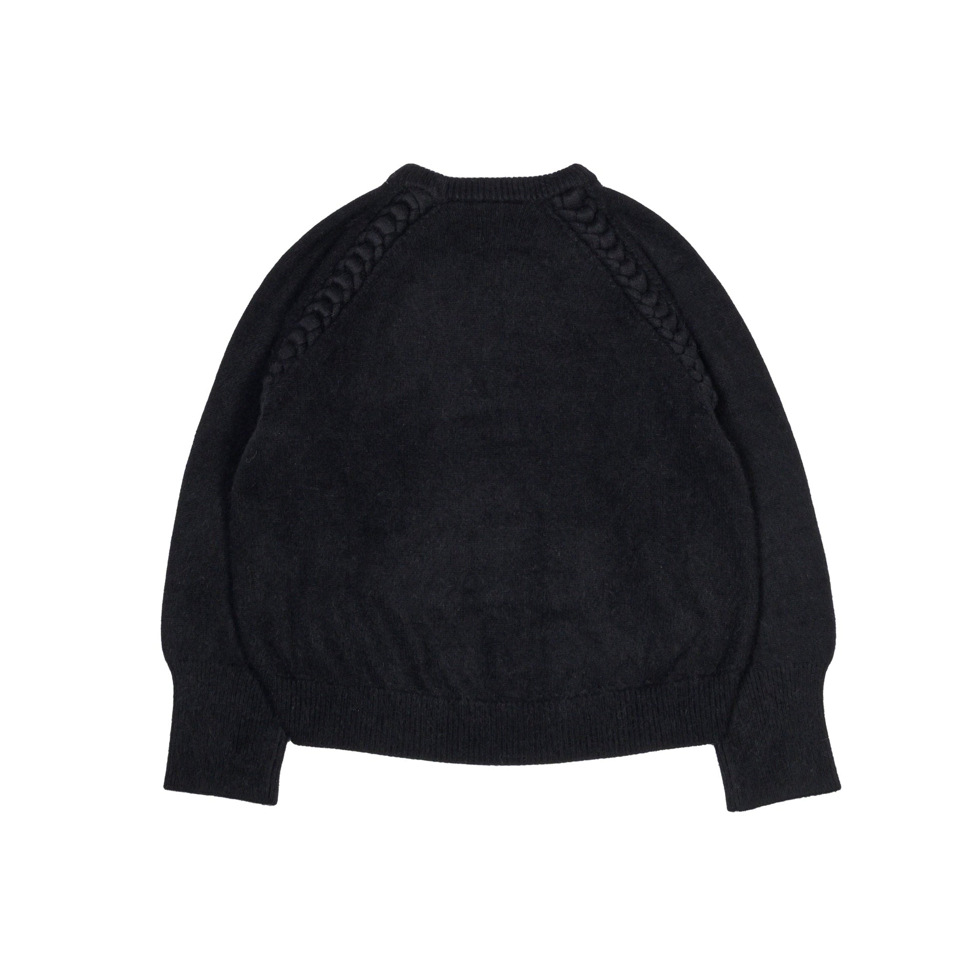 シンプルなロングスリーブニットに、チェーンを連想させる編み込みをあしらったアクセントデザイン。