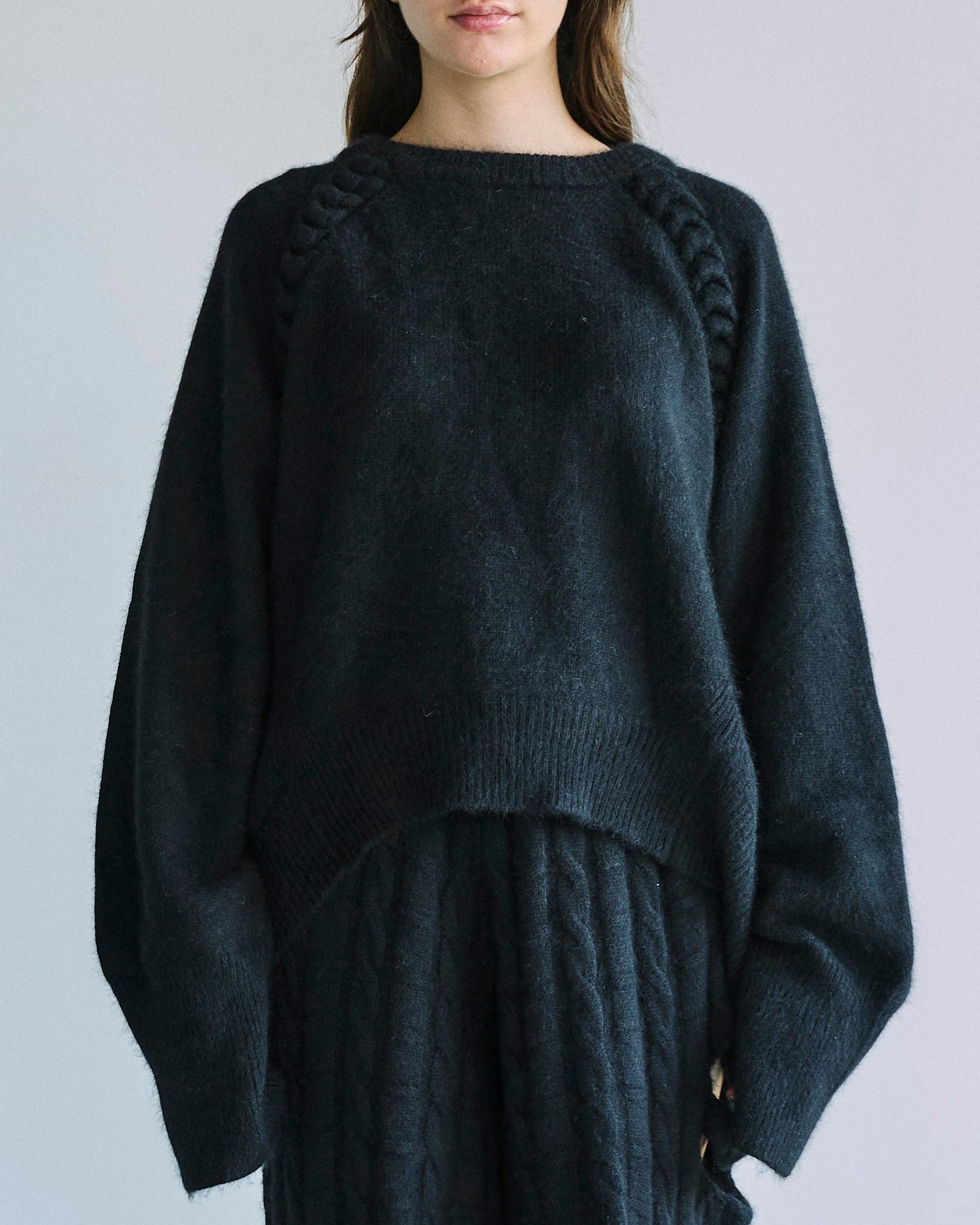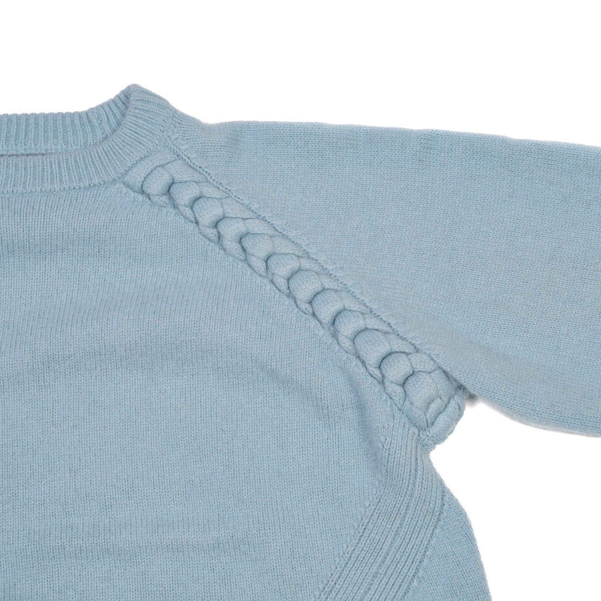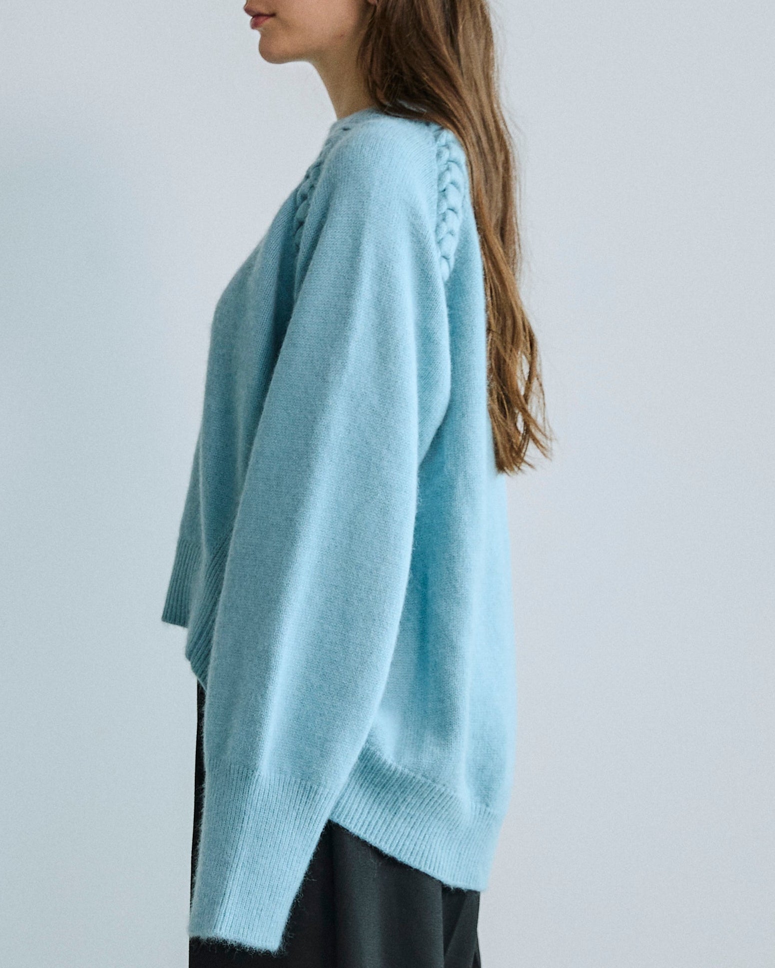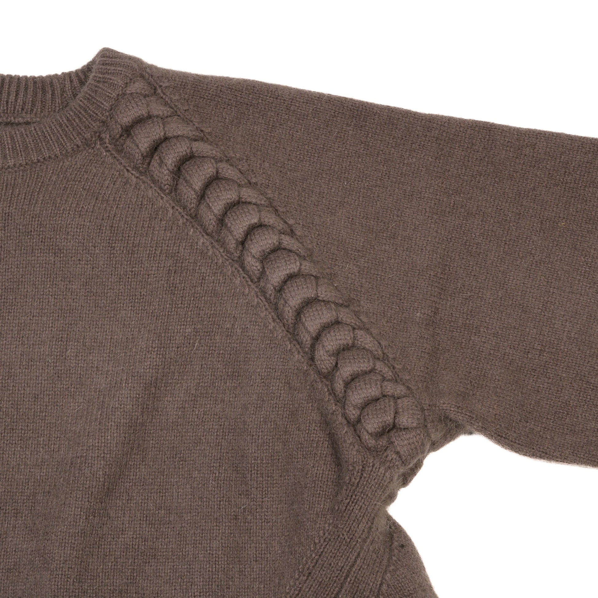 シンプルなロングスリーブニットに、チェーンを連想させる編み込みをあしらったアクセントデザイン。