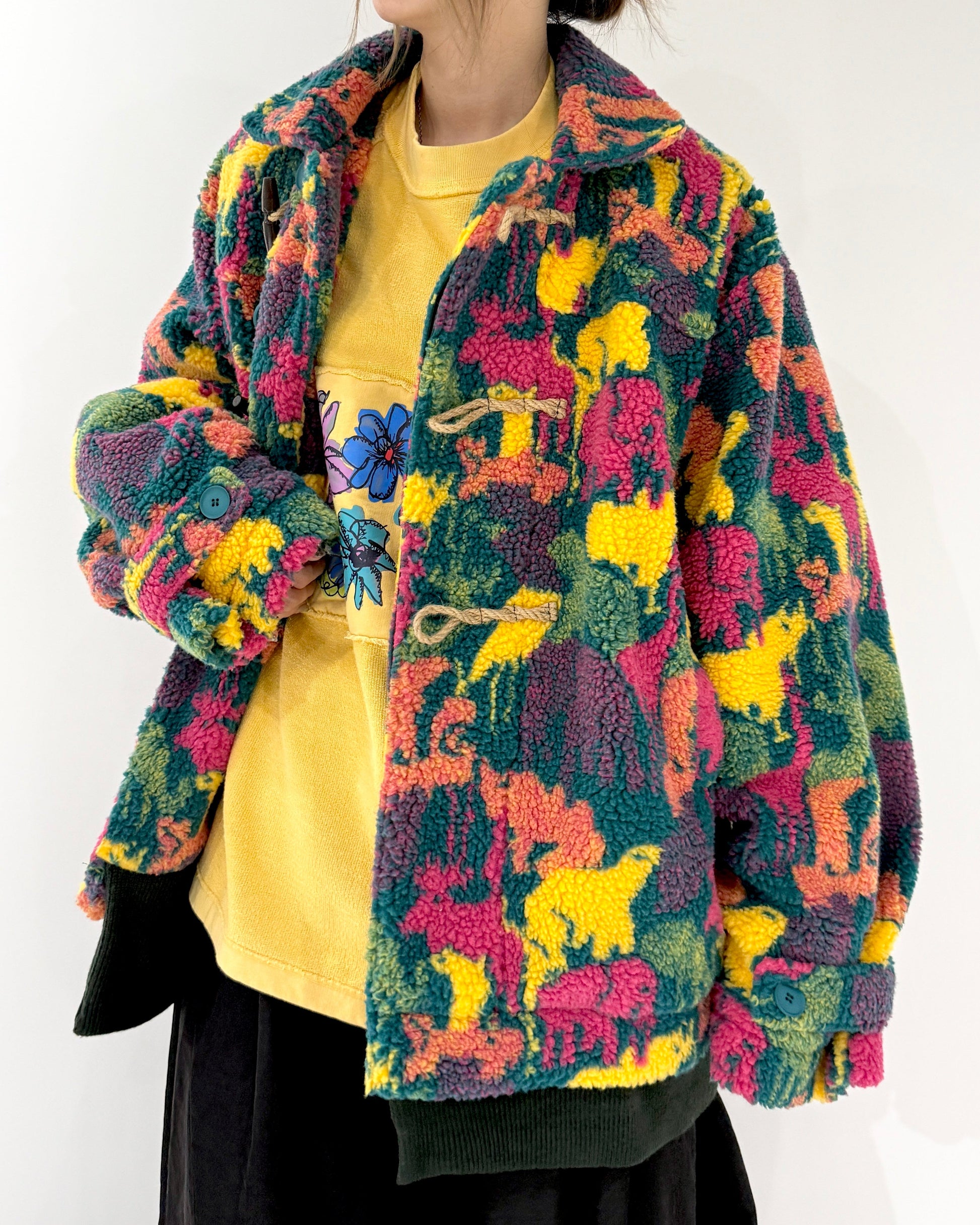 【大胆なマルチカラーのダイナソーダッフルコート】