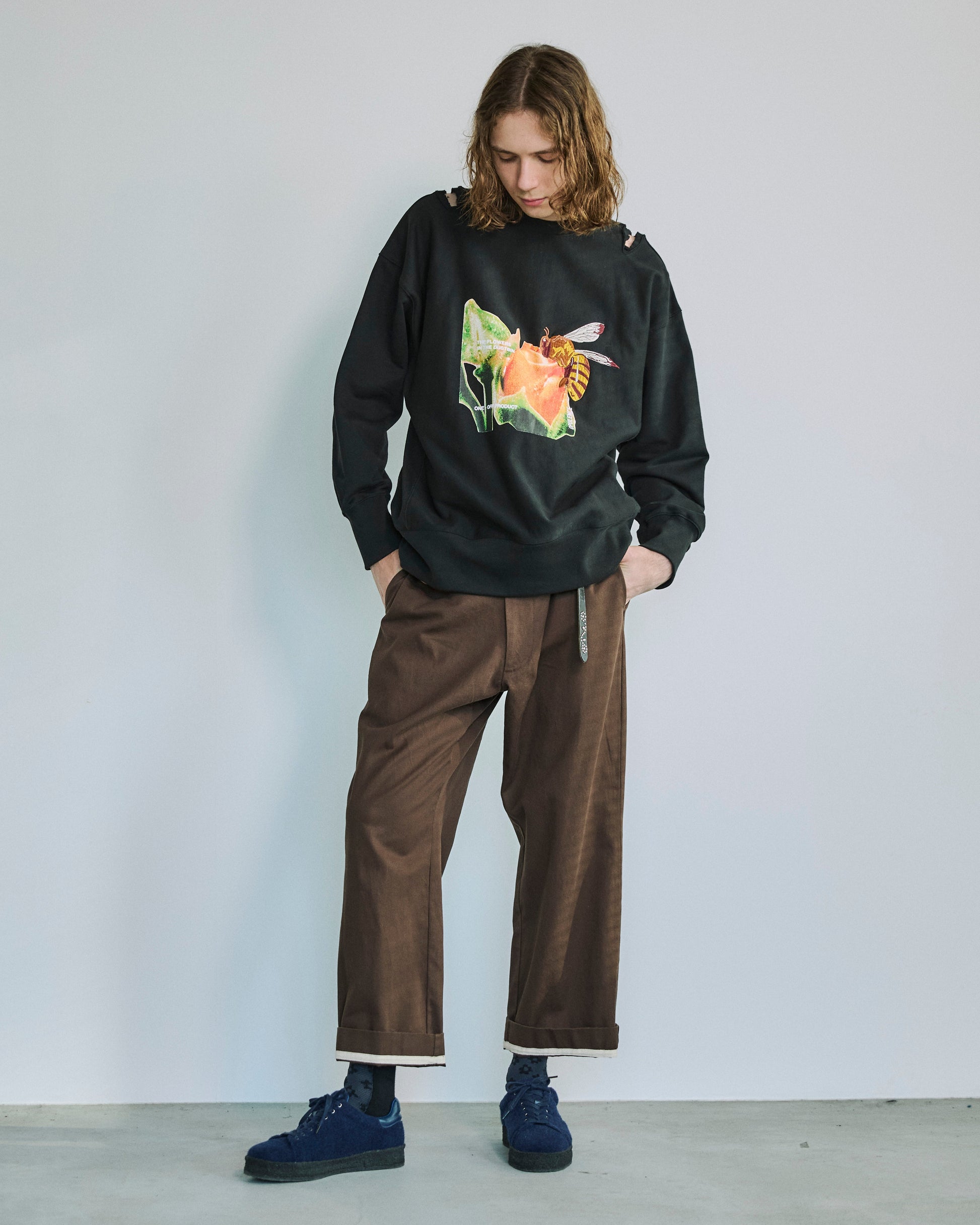 ・50年代のウエスタンパンツから着想を得た“フラワータブ”ディテールが、さりげないアクセントに。