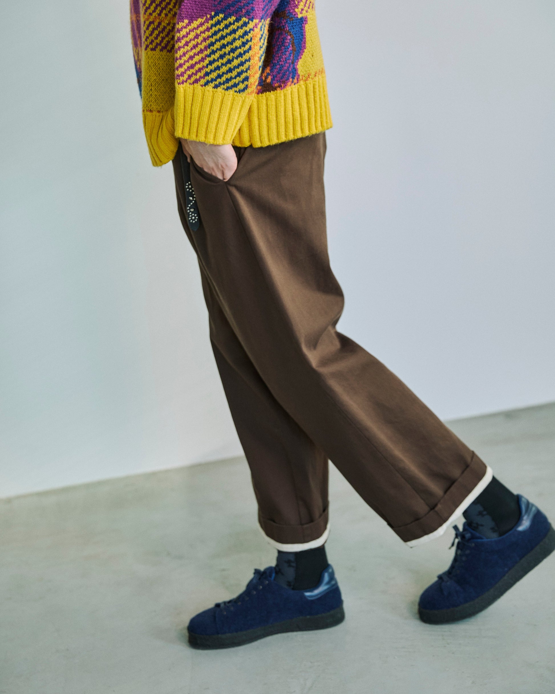 ・定番のチノパンツに、シックな新色ダークグリーンとネイビーが登場。落ち着いたトーンが洗練された大人のスタイルを引き立てます。
