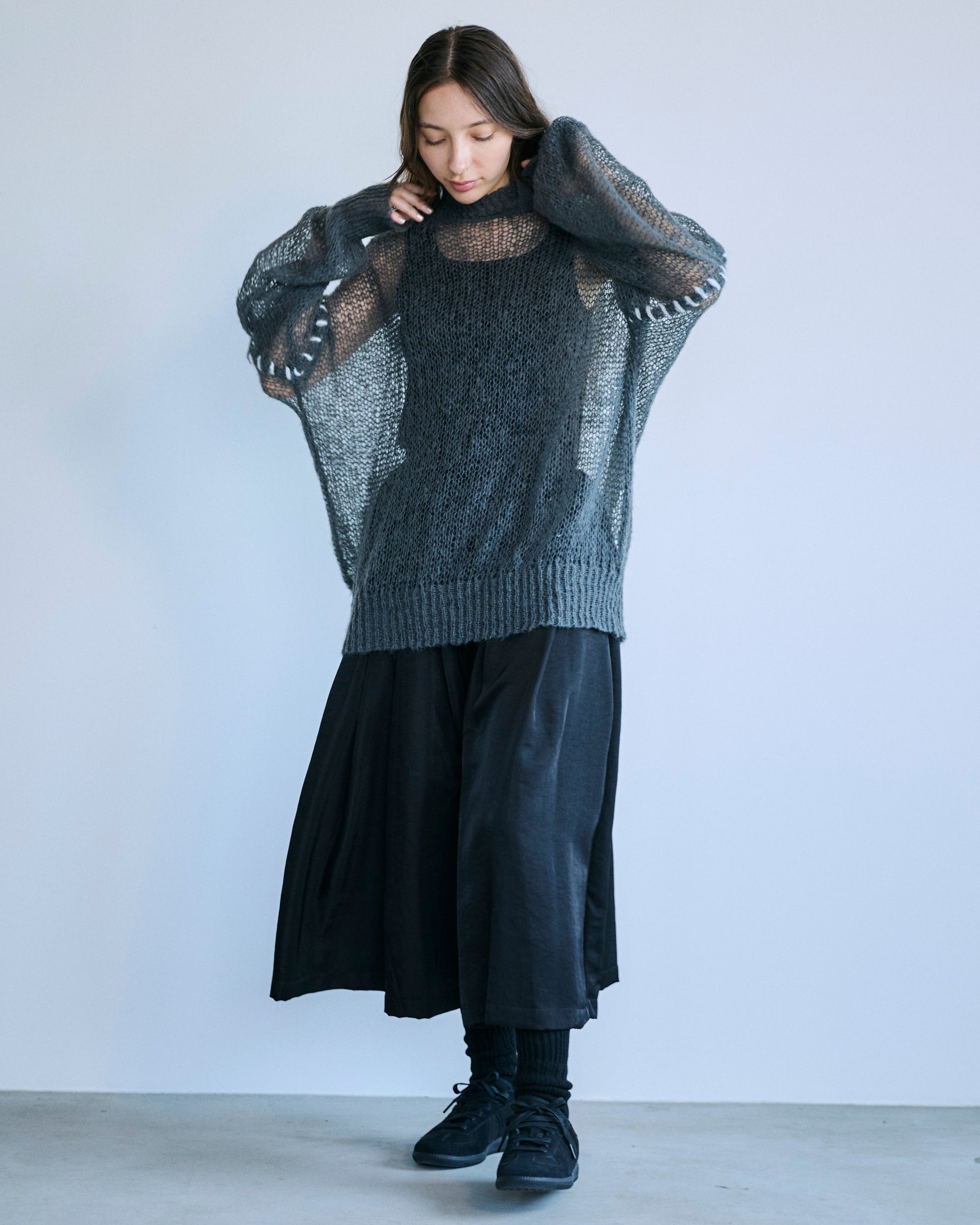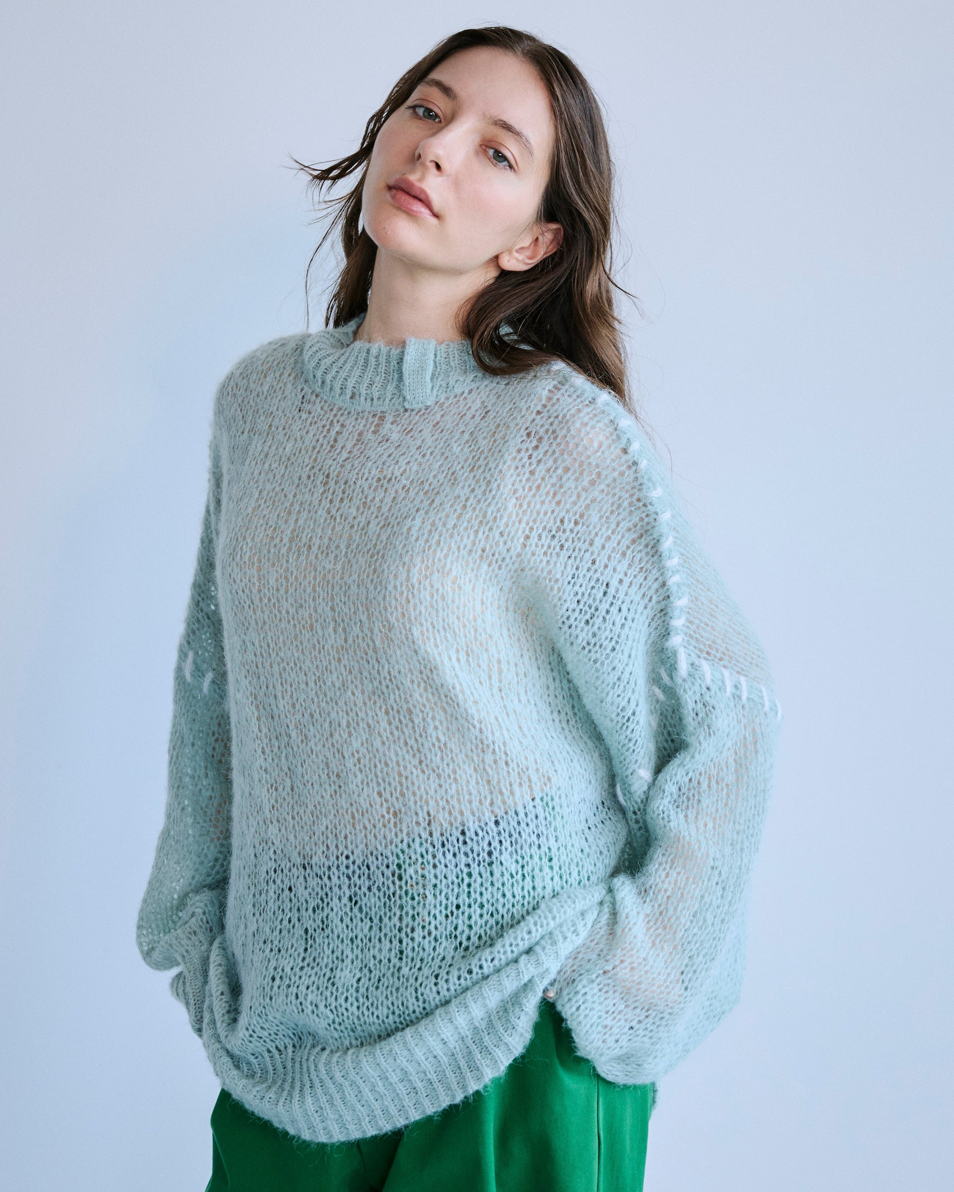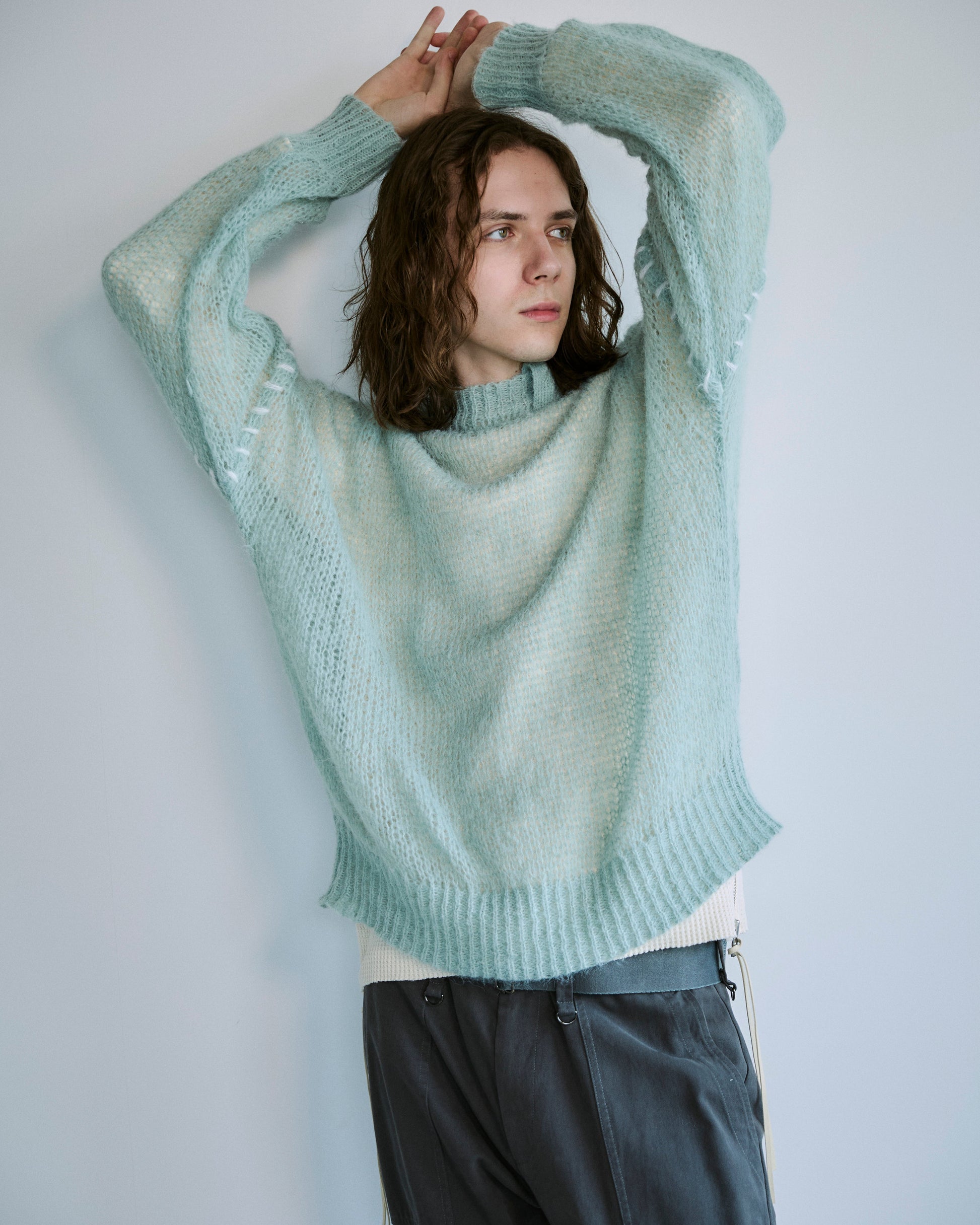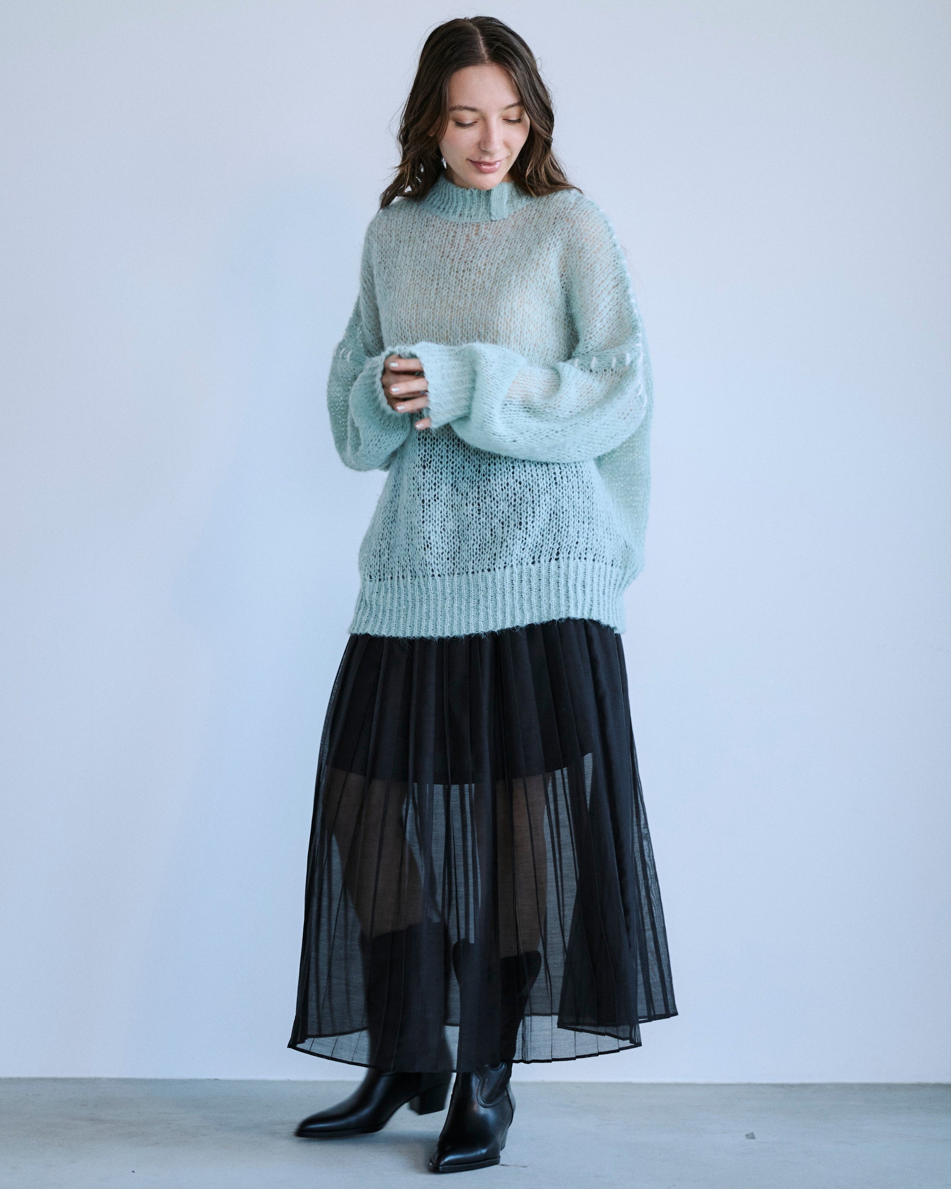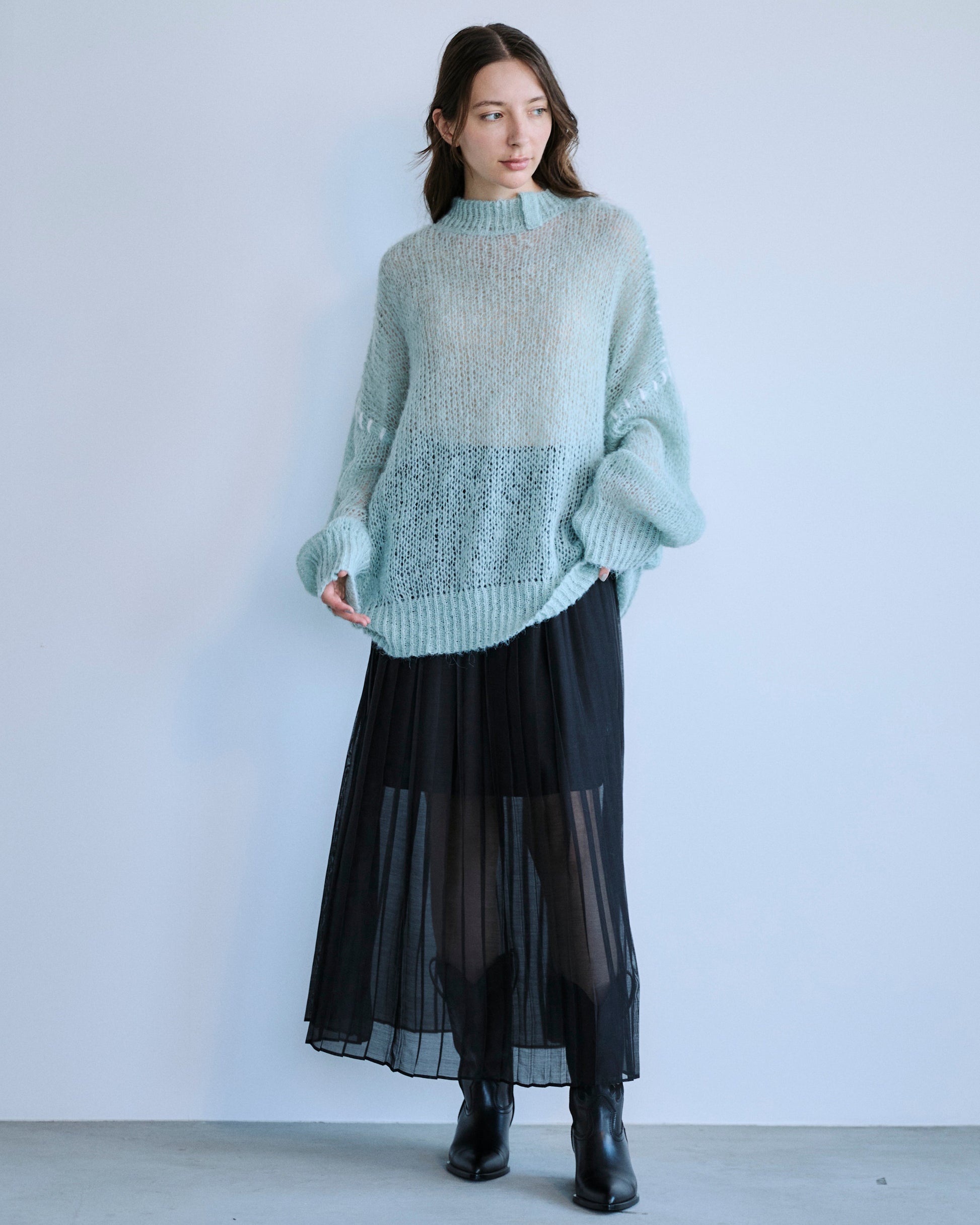 モヘア調のふんわりとした編地が印象的なシアーニット。