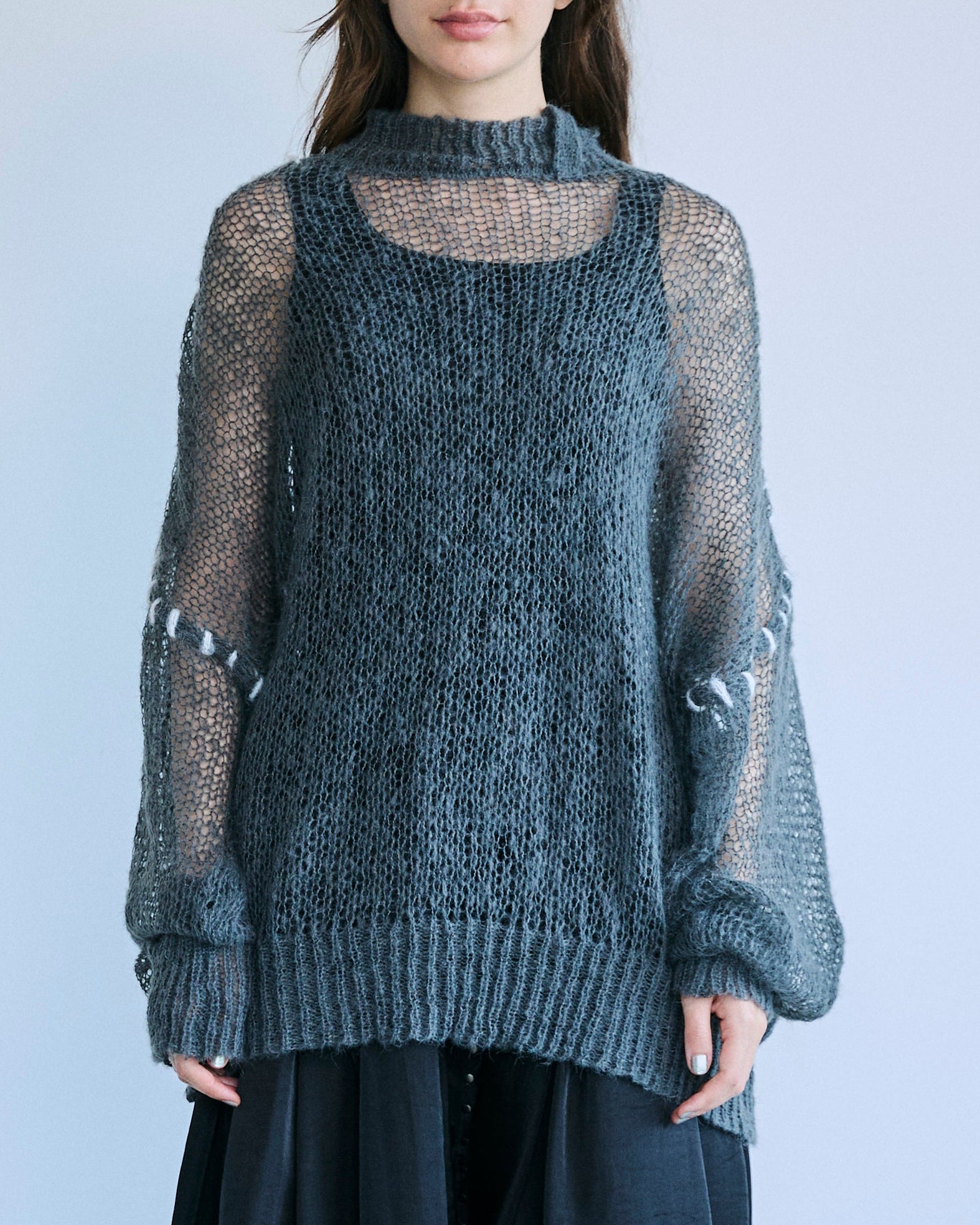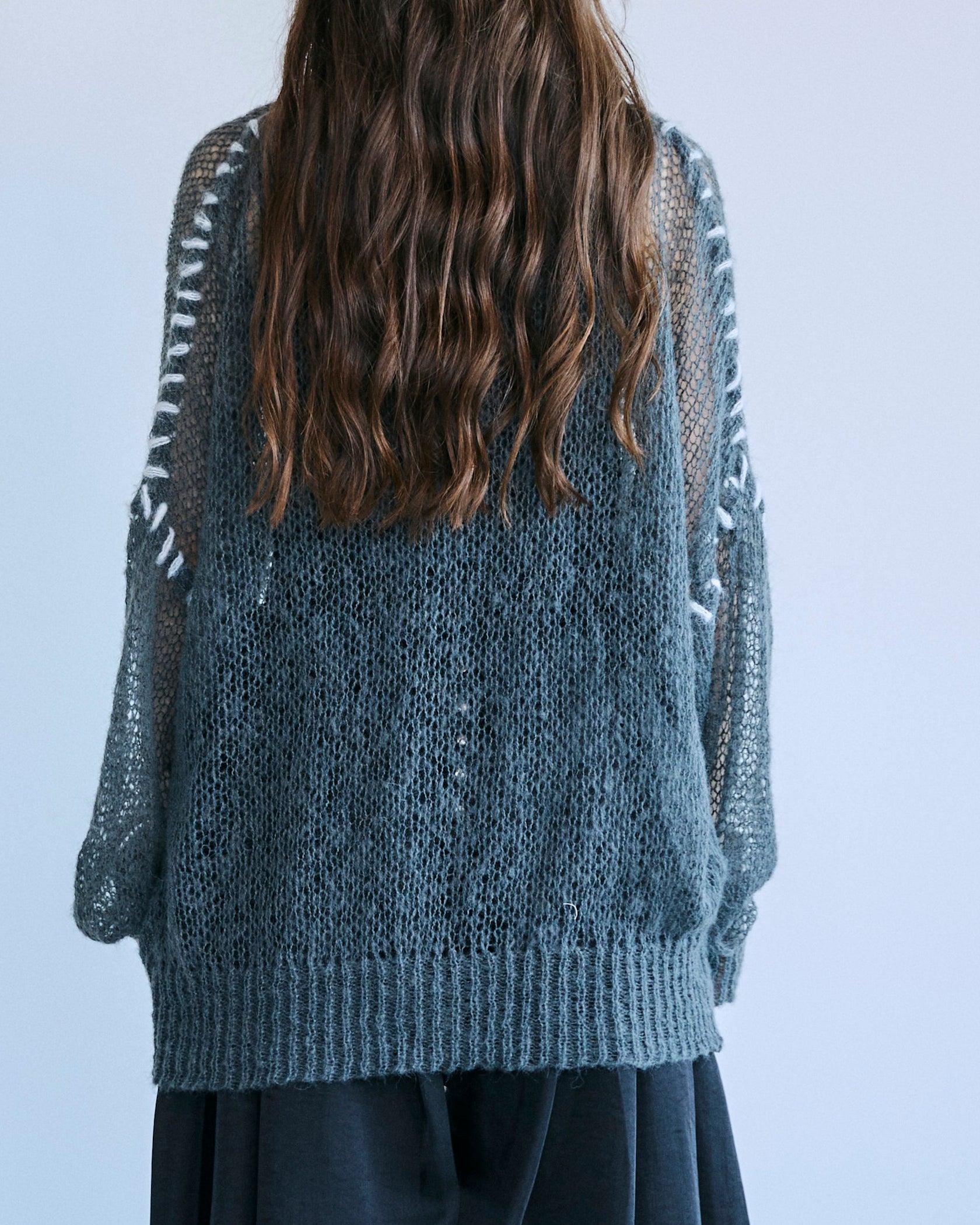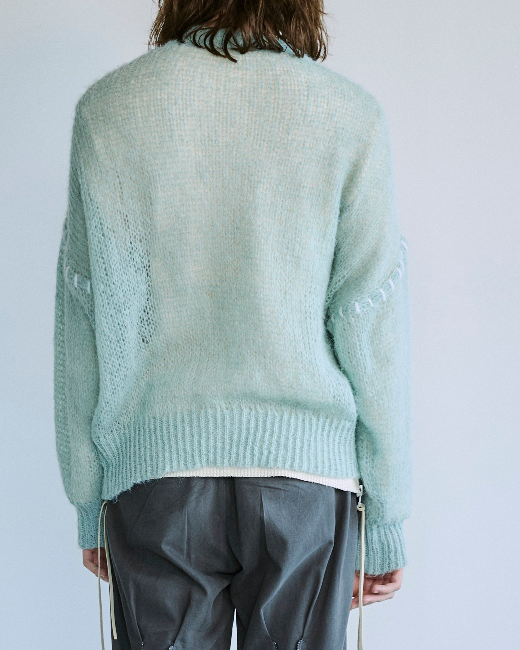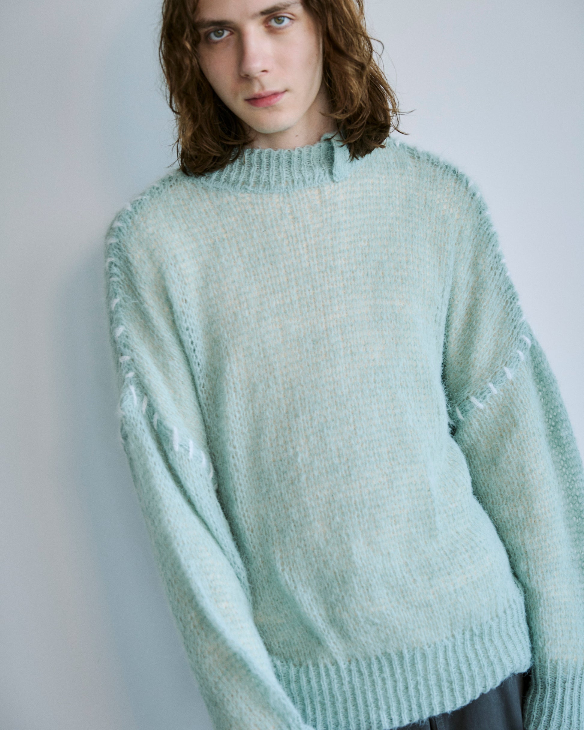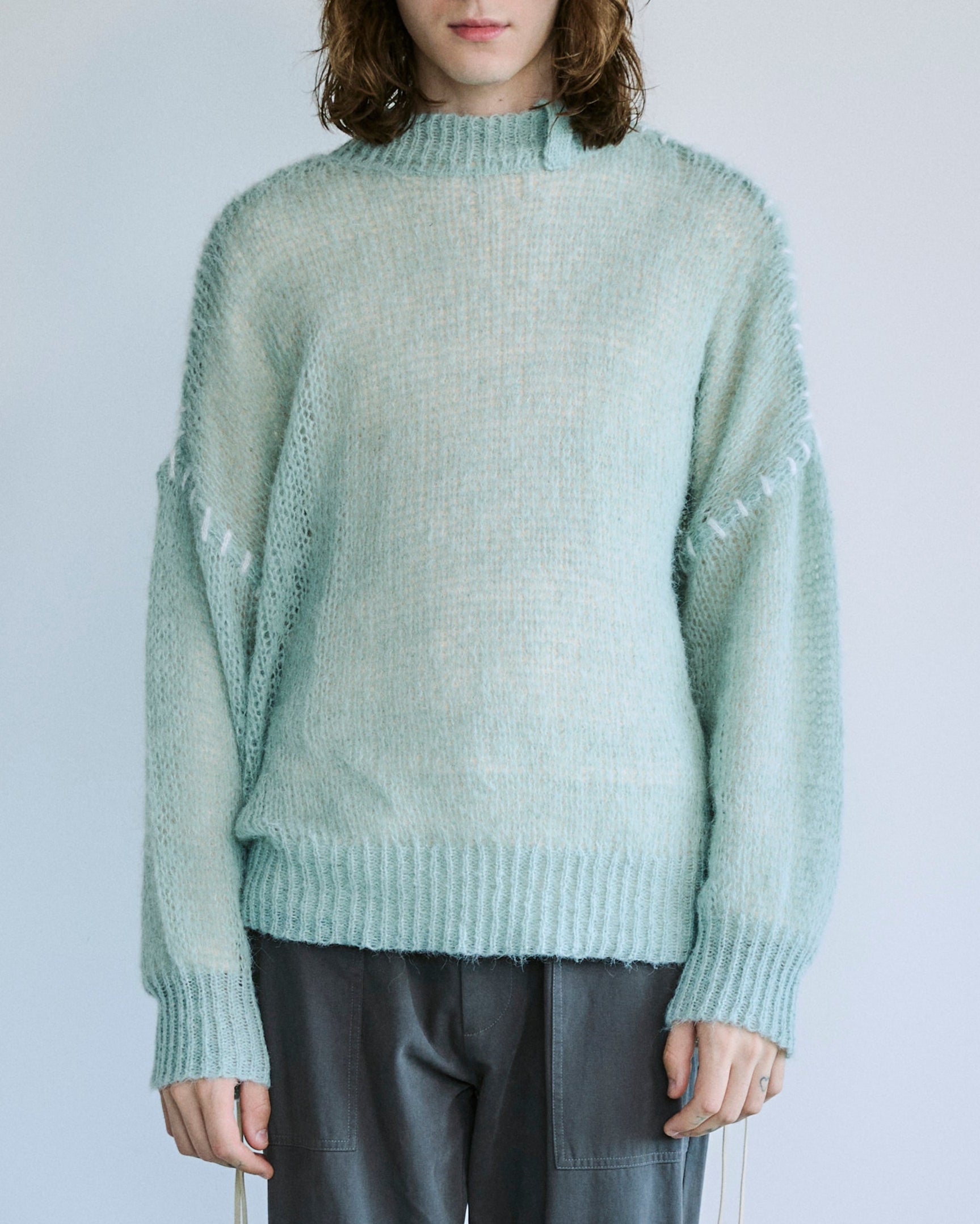 モヘア調のふんわりとした編地が印象的なシアーニット。