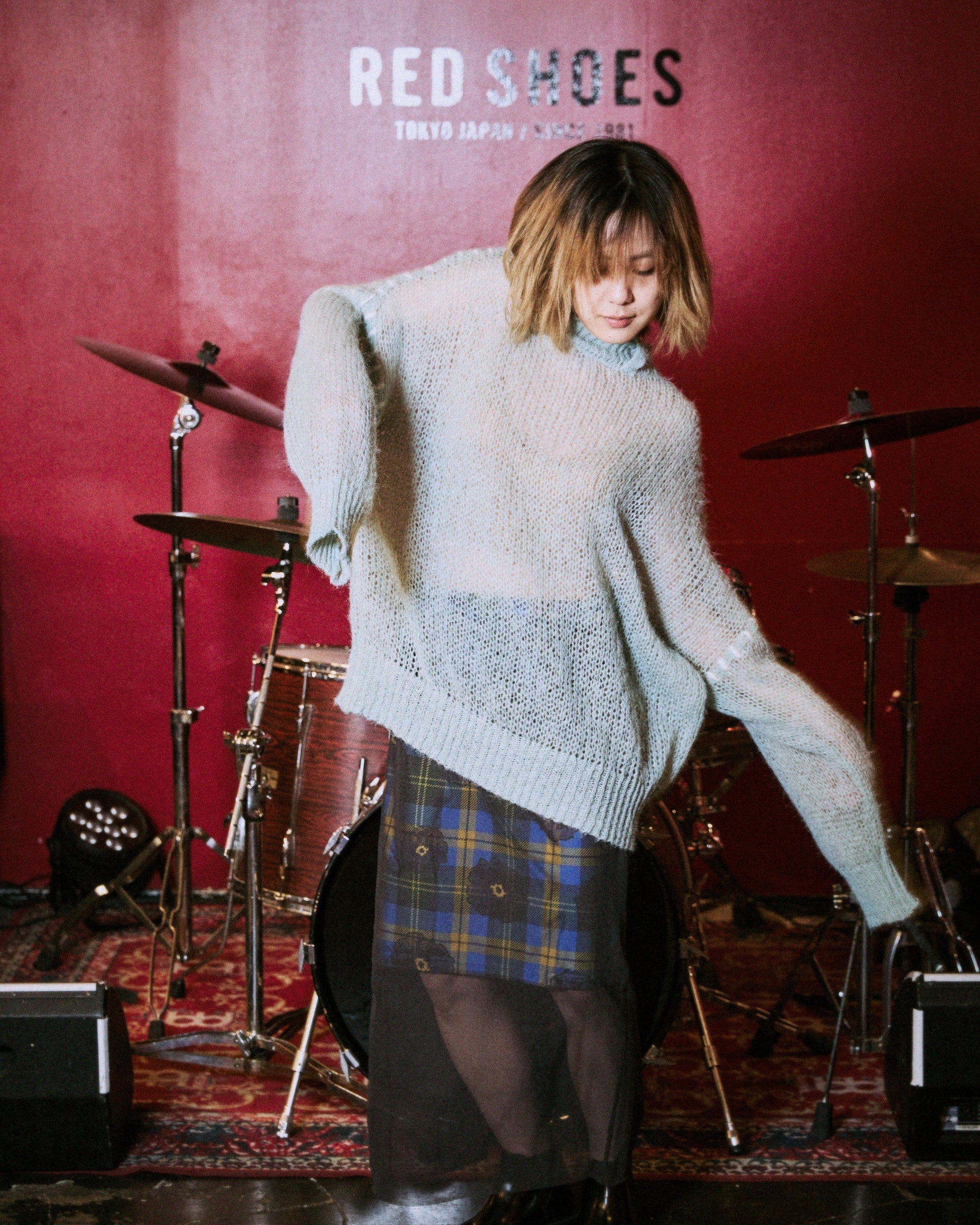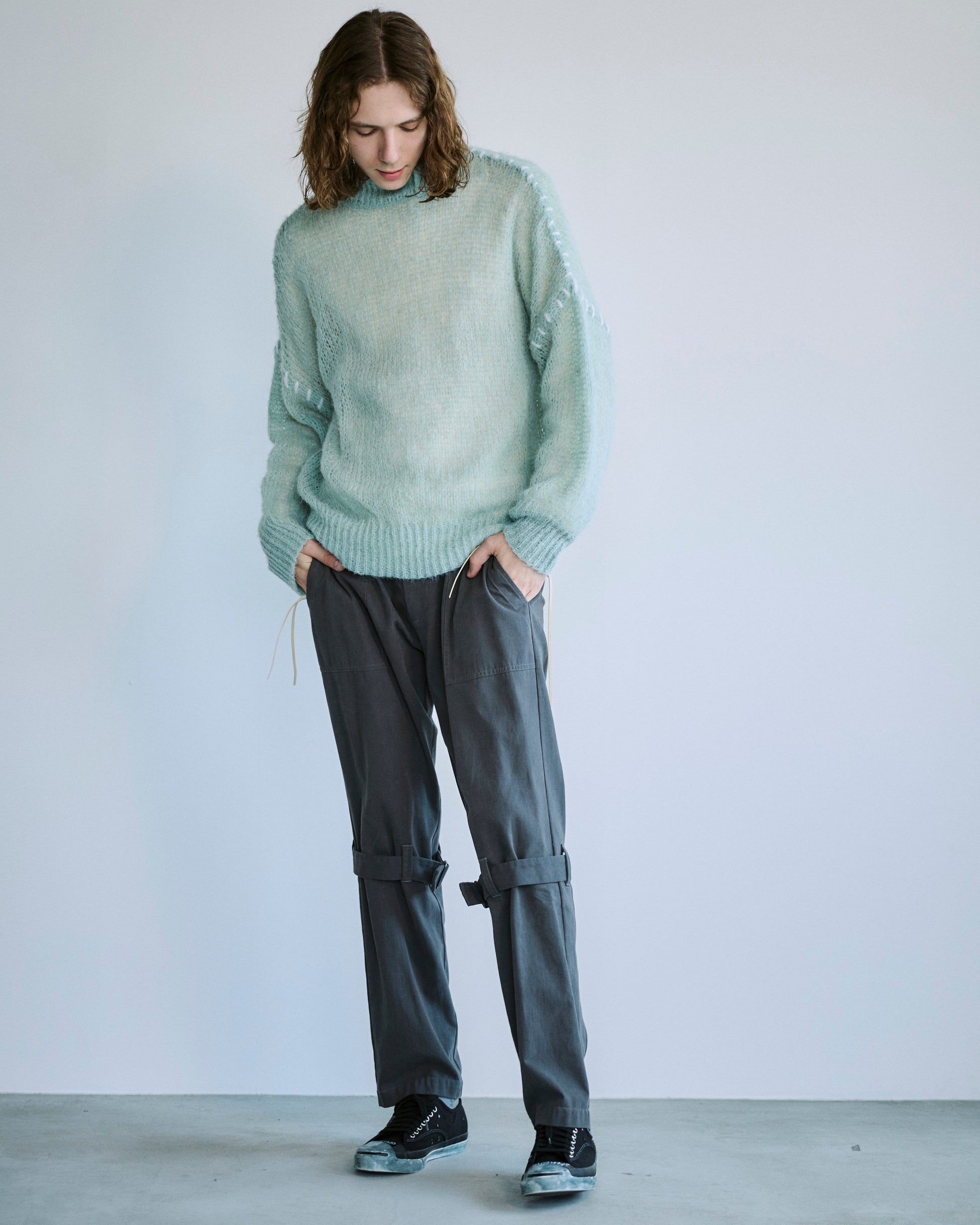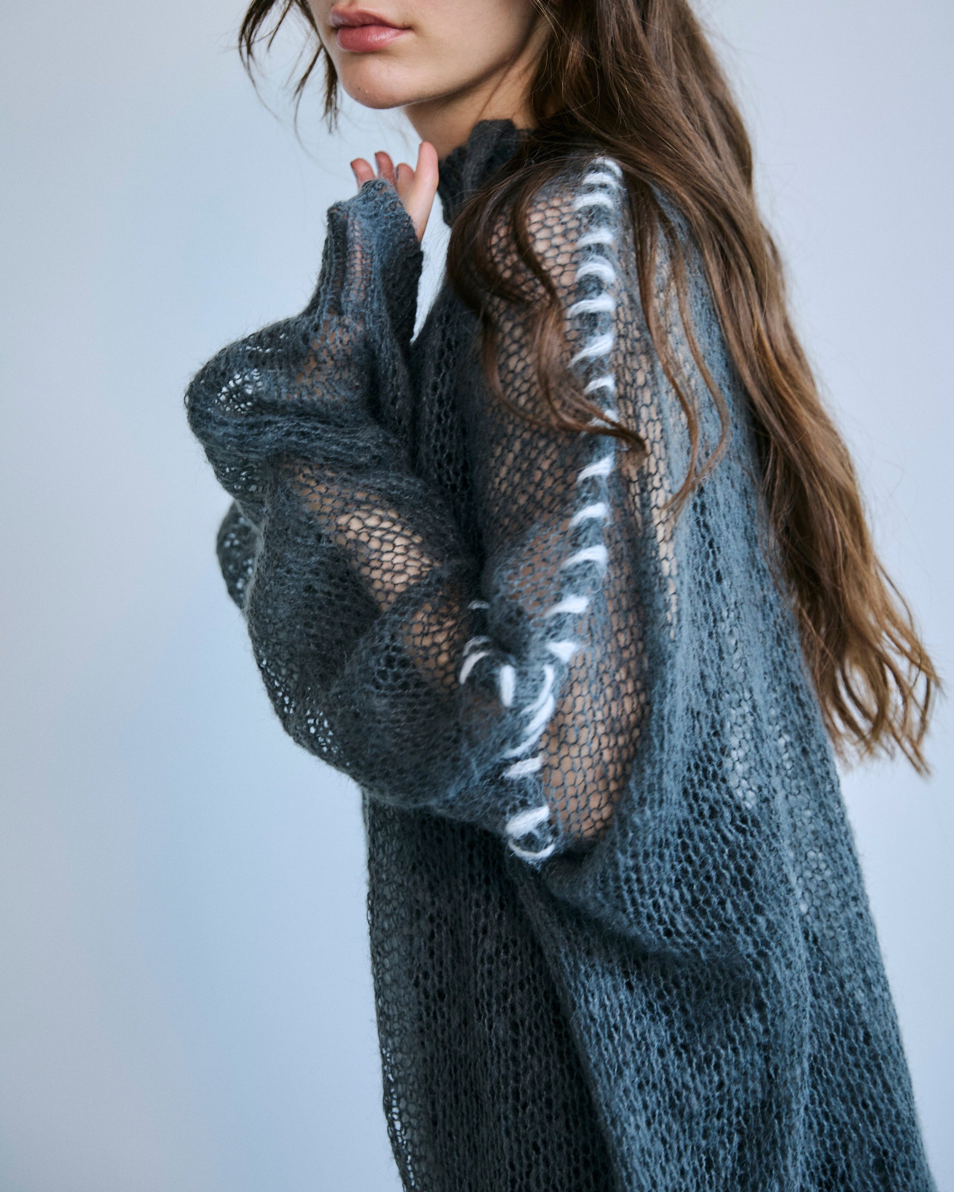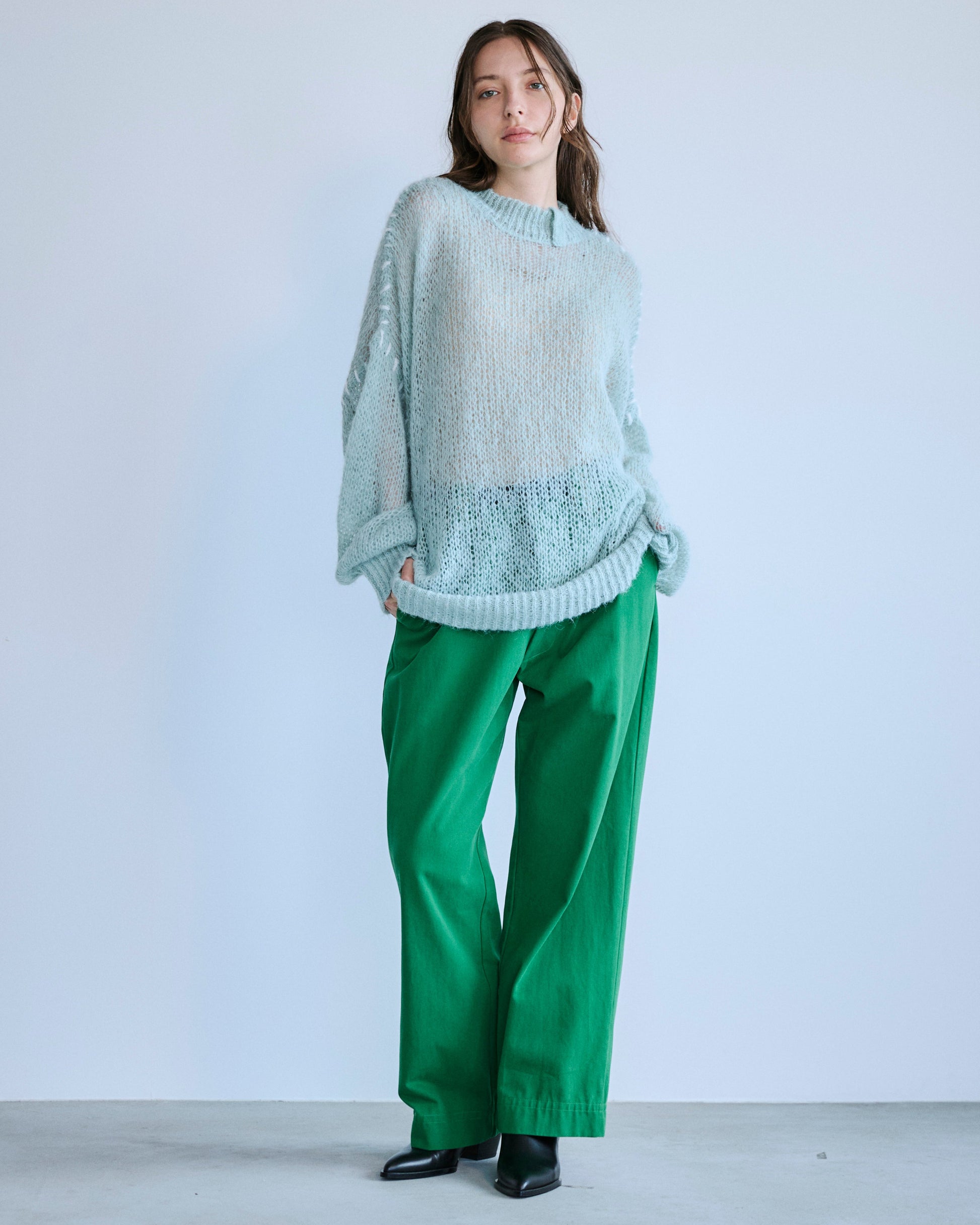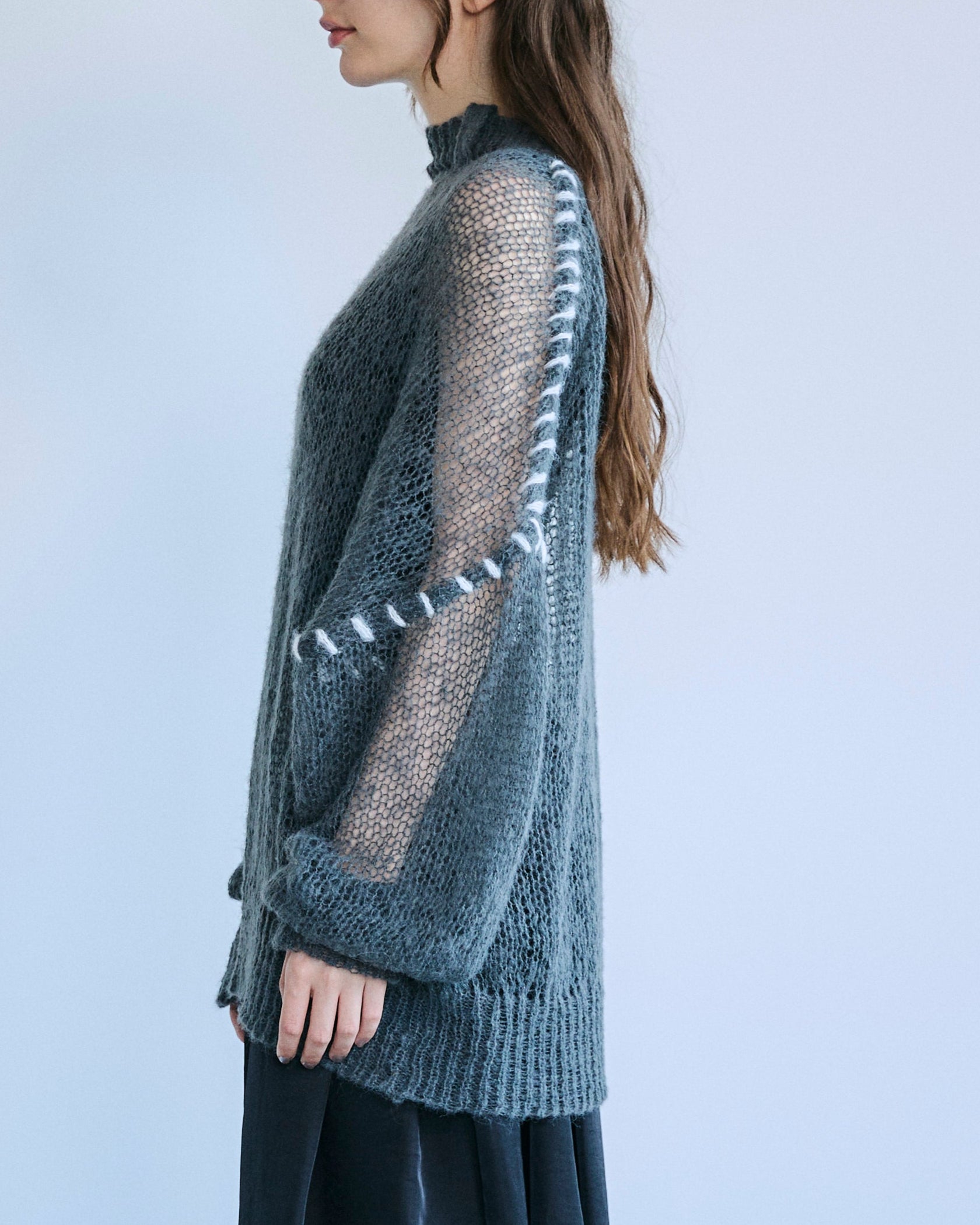 モヘア調のふんわりとした編地が印象的なシアーニット。