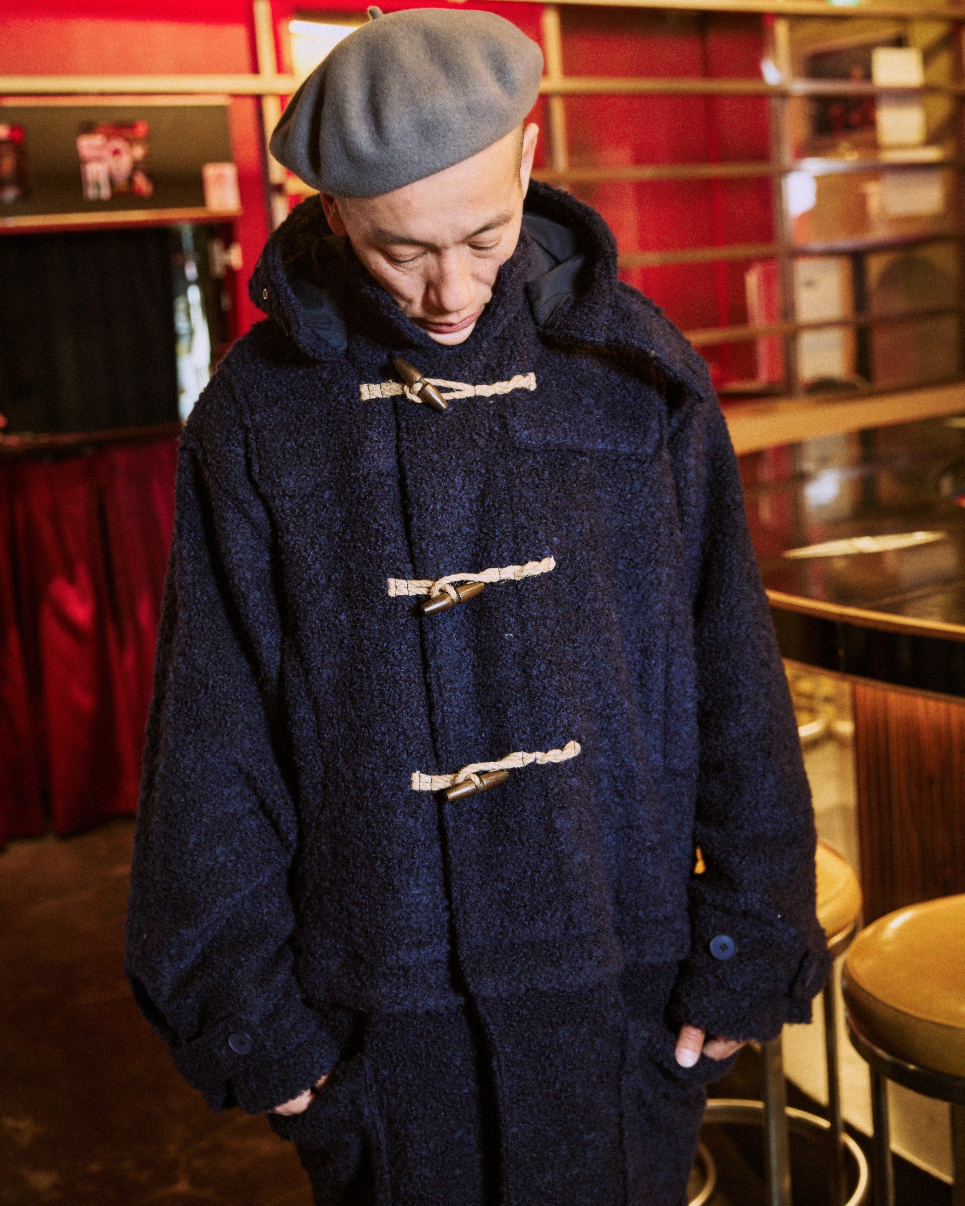 厚手の起毛したウール素材で、保温性や実用性に優れています