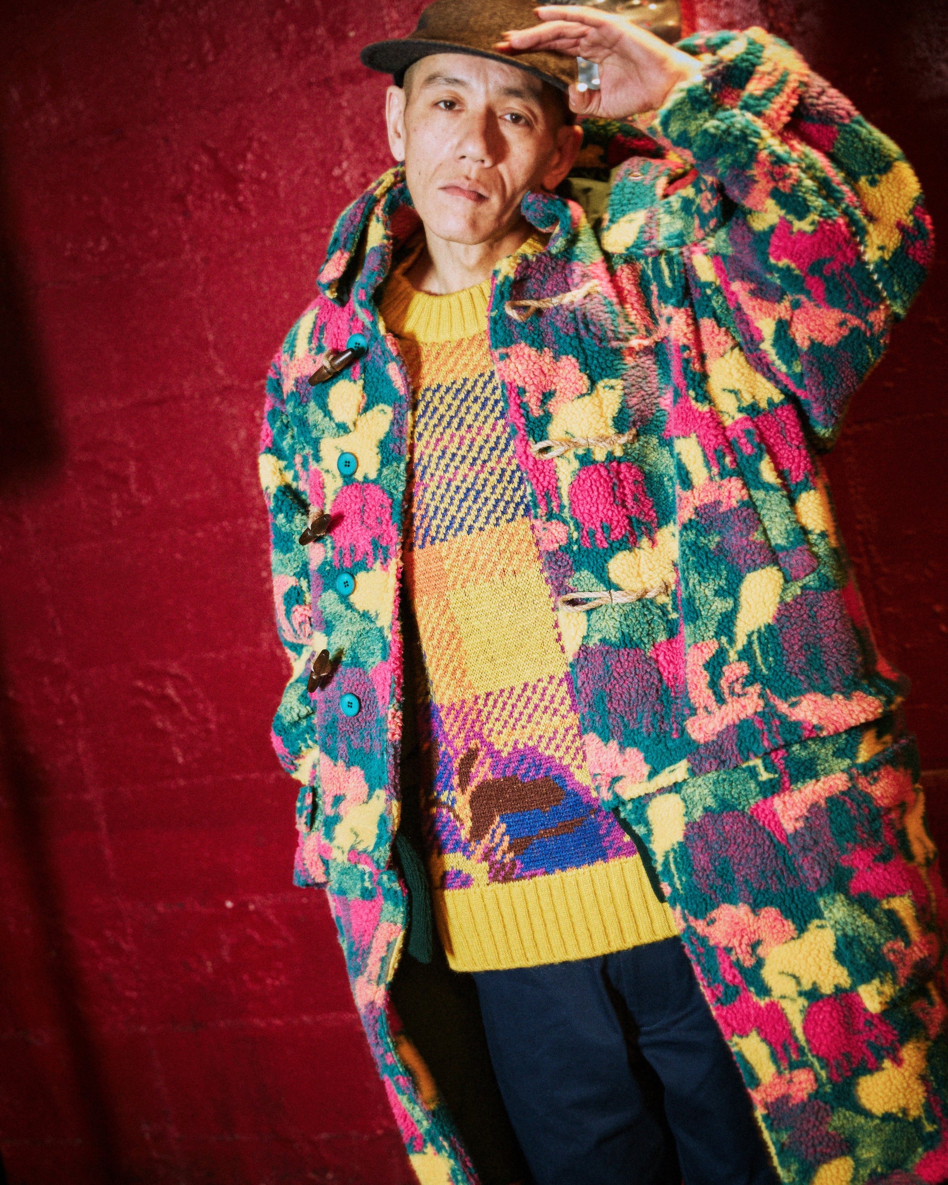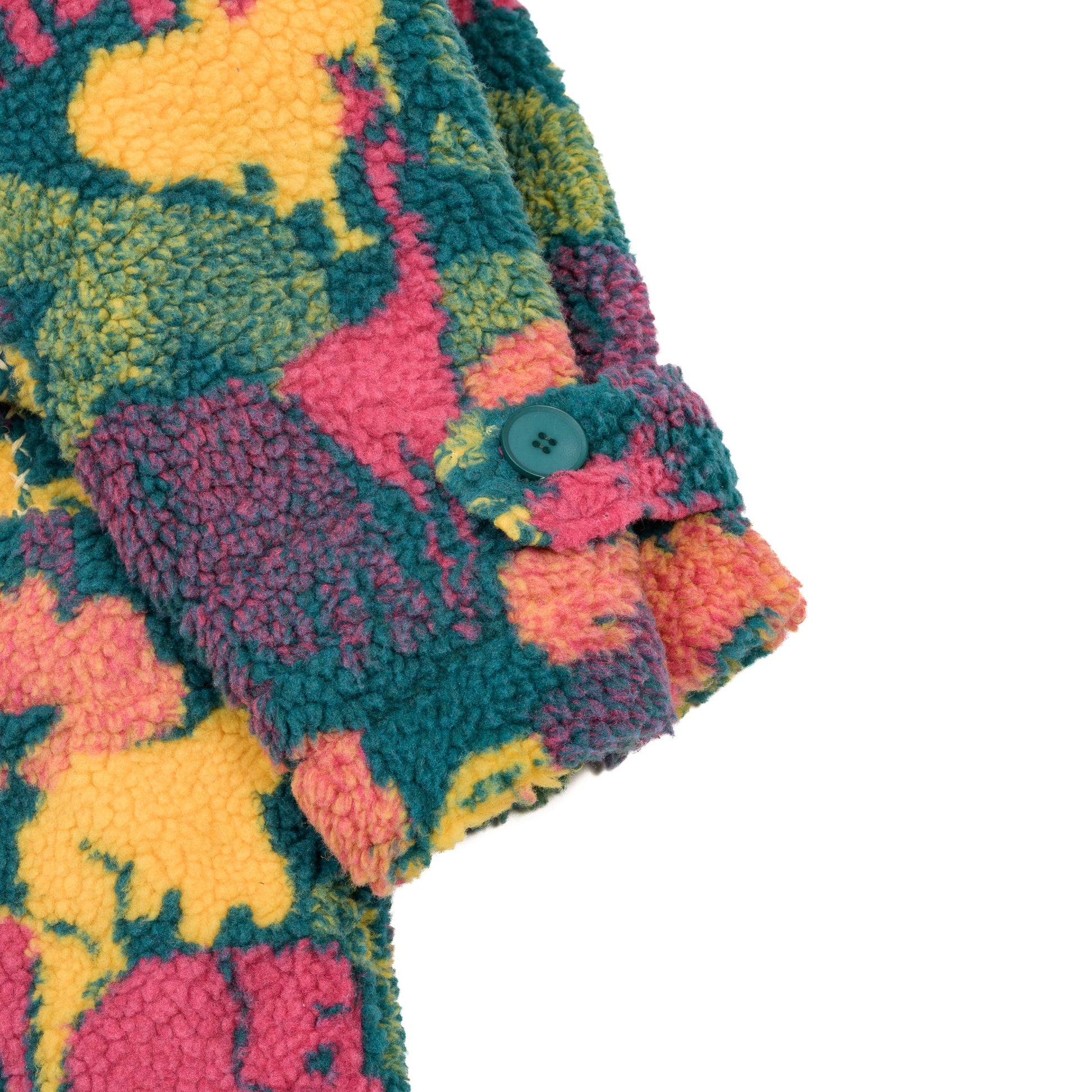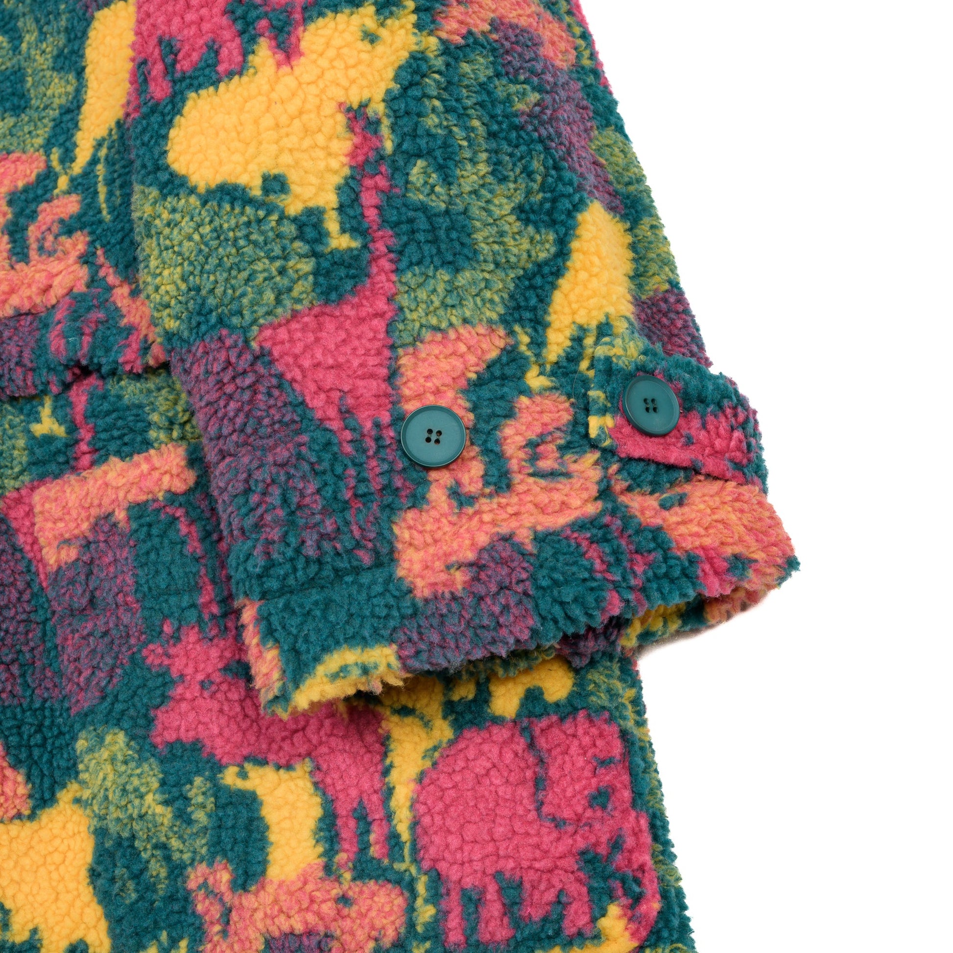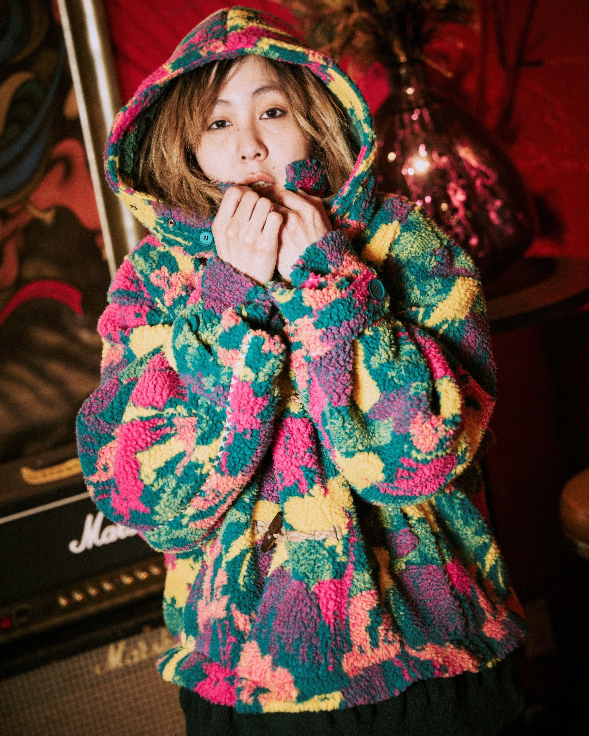 大胆なマルチカラーのアニマル柄ボアで仕立てた、存在感抜群のアウター。