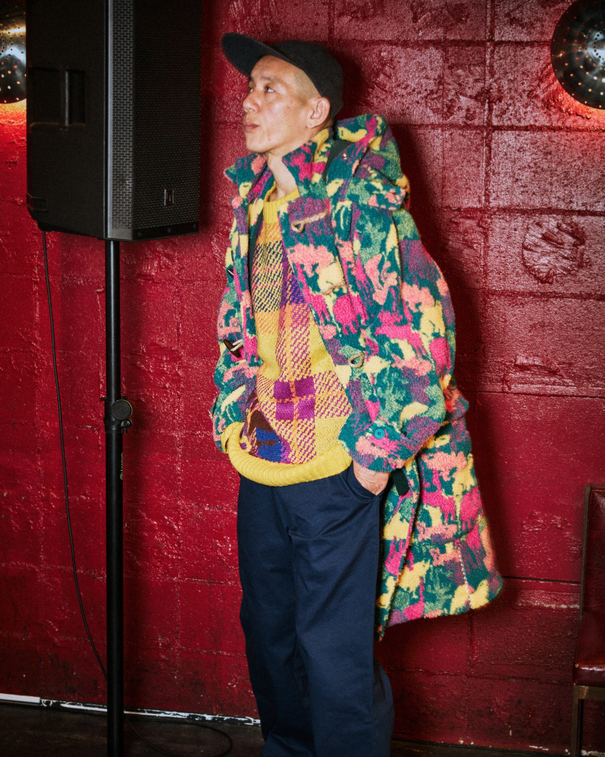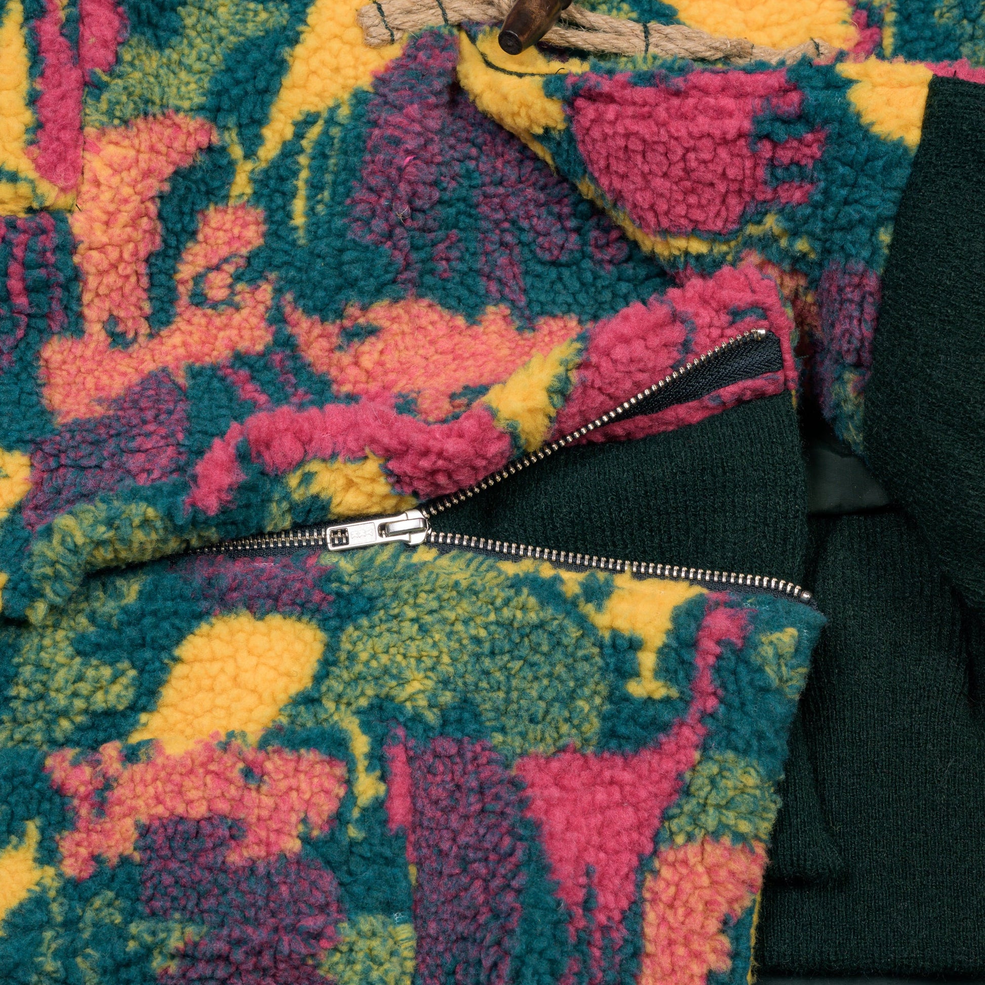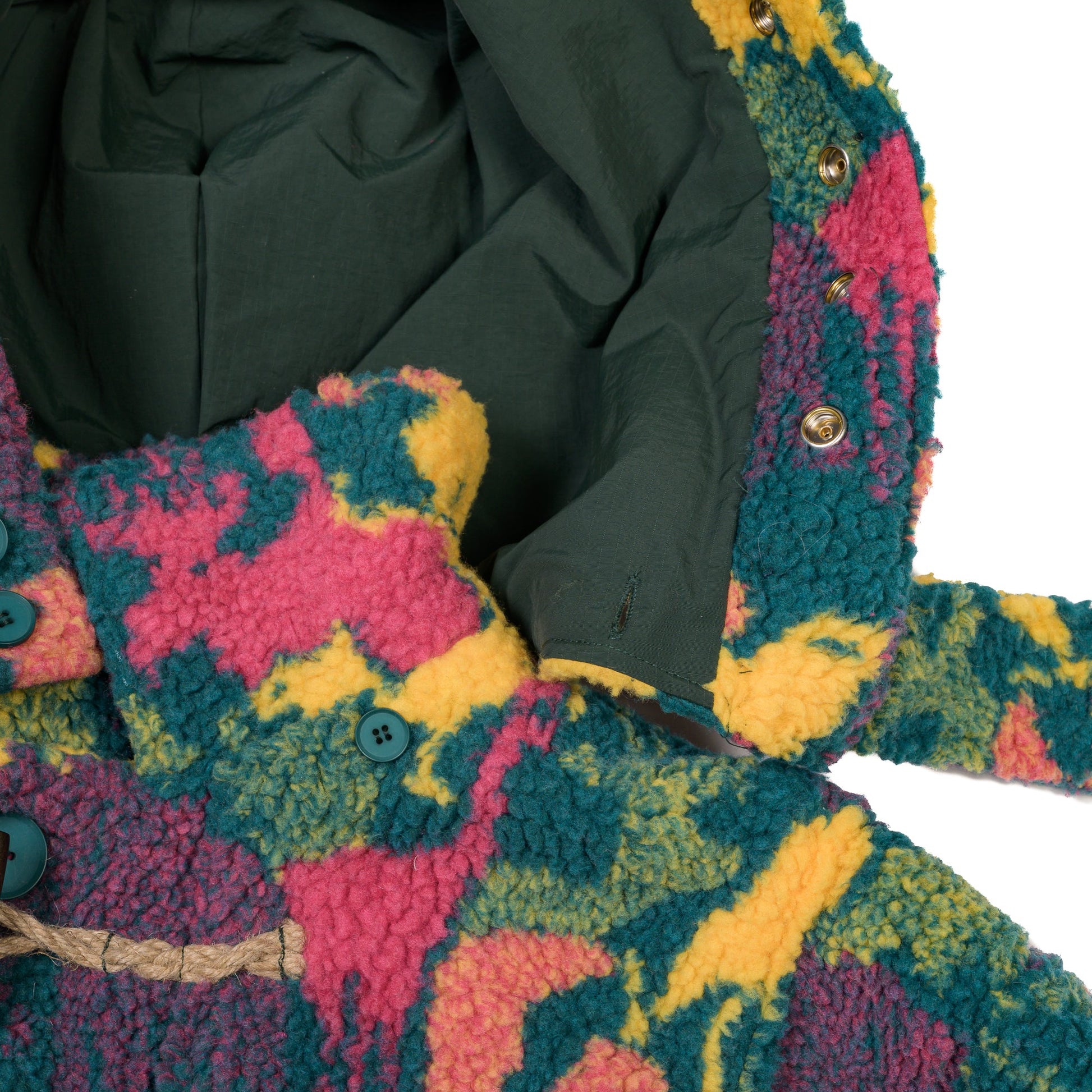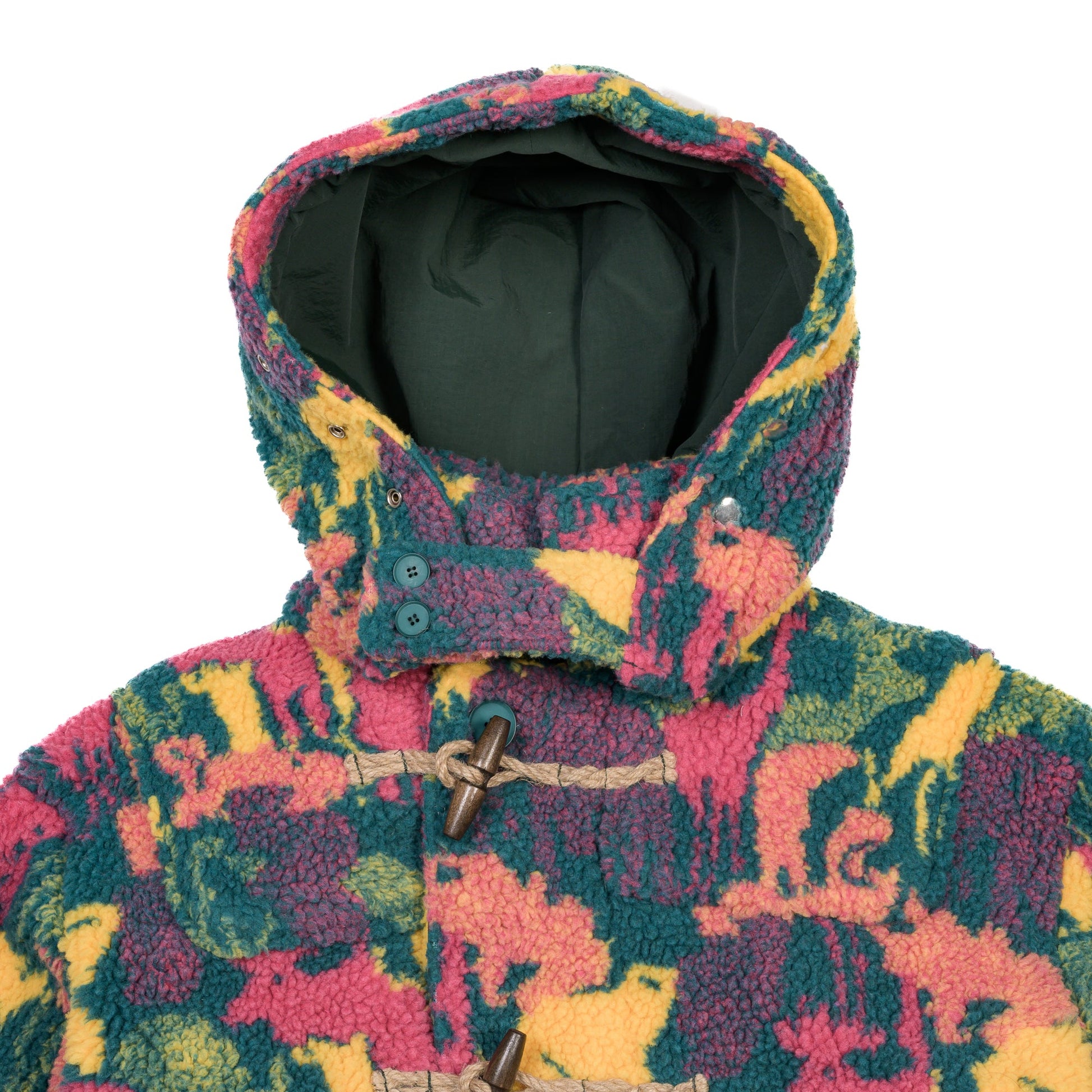 大胆なマルチカラーのアニマル柄ボアで仕立てた、存在感抜群のアウター。